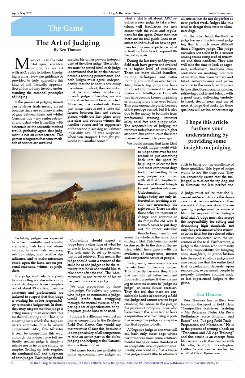 Bird Dog & Retriever News, PO Box 120089, New Brighton,