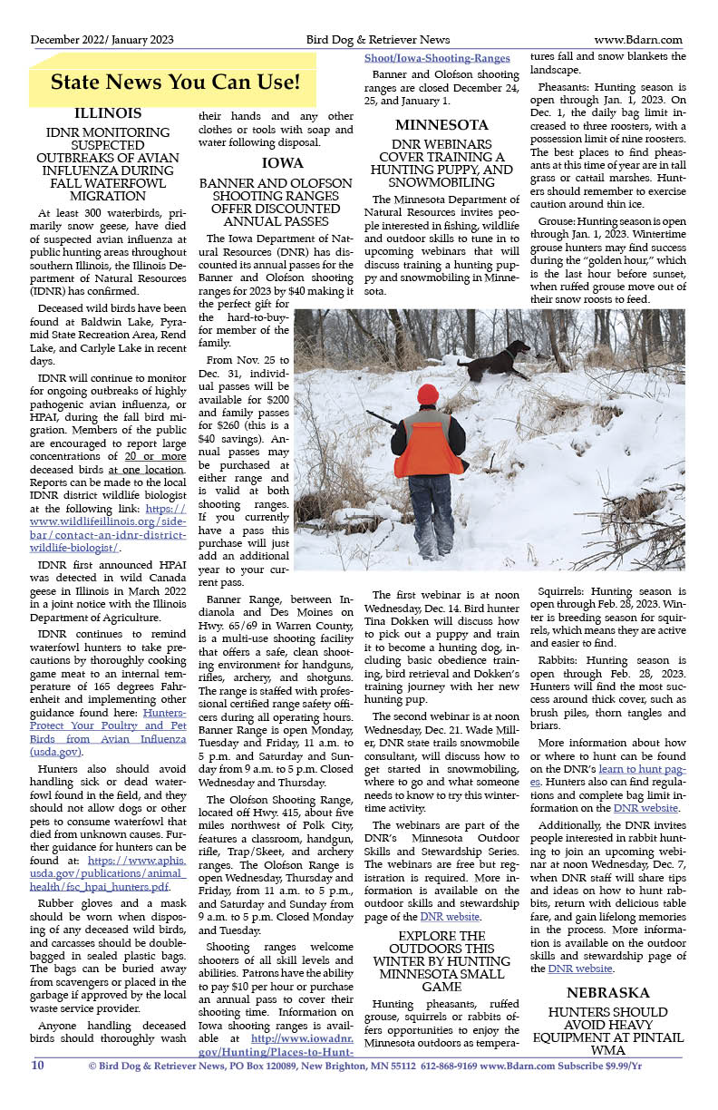 The first webinar is at noon Wednesday, Dec. 14. Bird hunter Tina Dokken will discuss how to pick out a puppy and train it to become a hunting dog, including basic obedience training, bird retrieval and Dokken’s training journey with her new hunting pup.