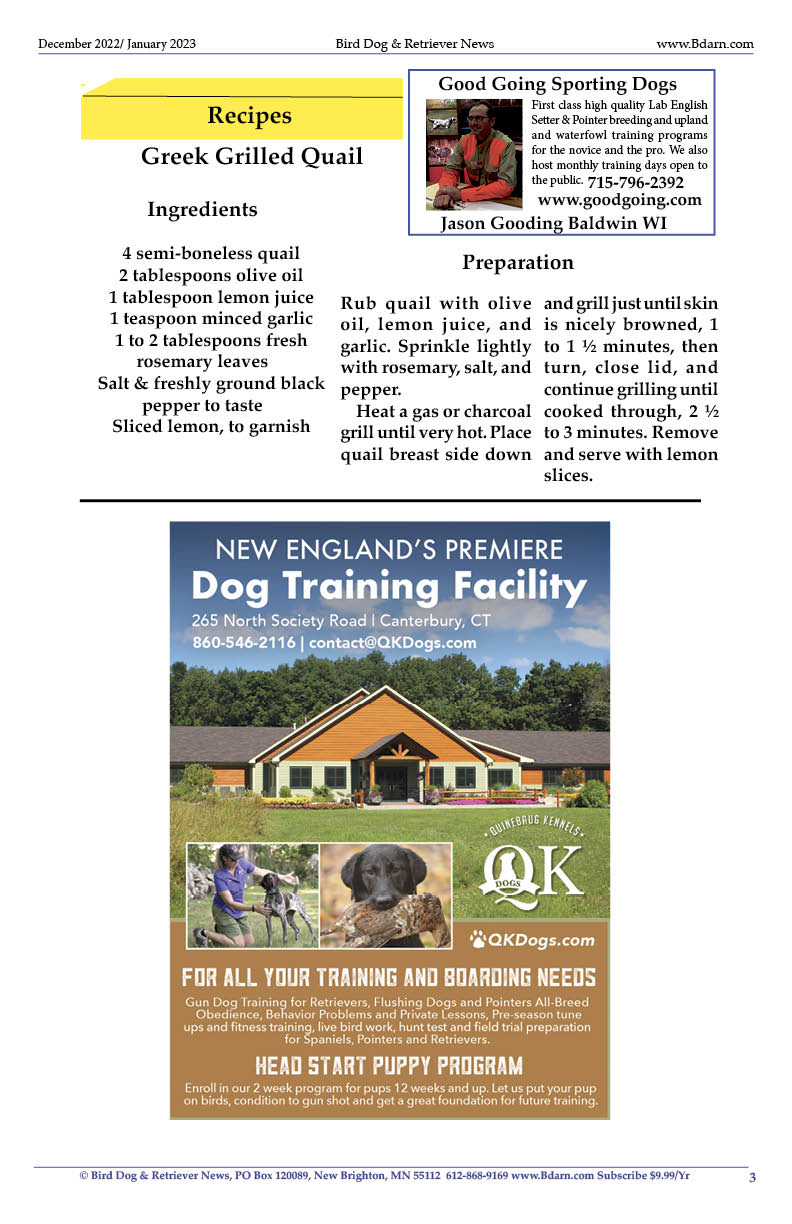 Heat a gas or charcoal grill until very hot. Place quail breast side down and grill just until skin is nicely browned, 1 to 1 ½ minutes, then turn, close lid, and continue grilling until cooked through, 2 ½ to 3 minutes. Remove and serve with lemon slices.