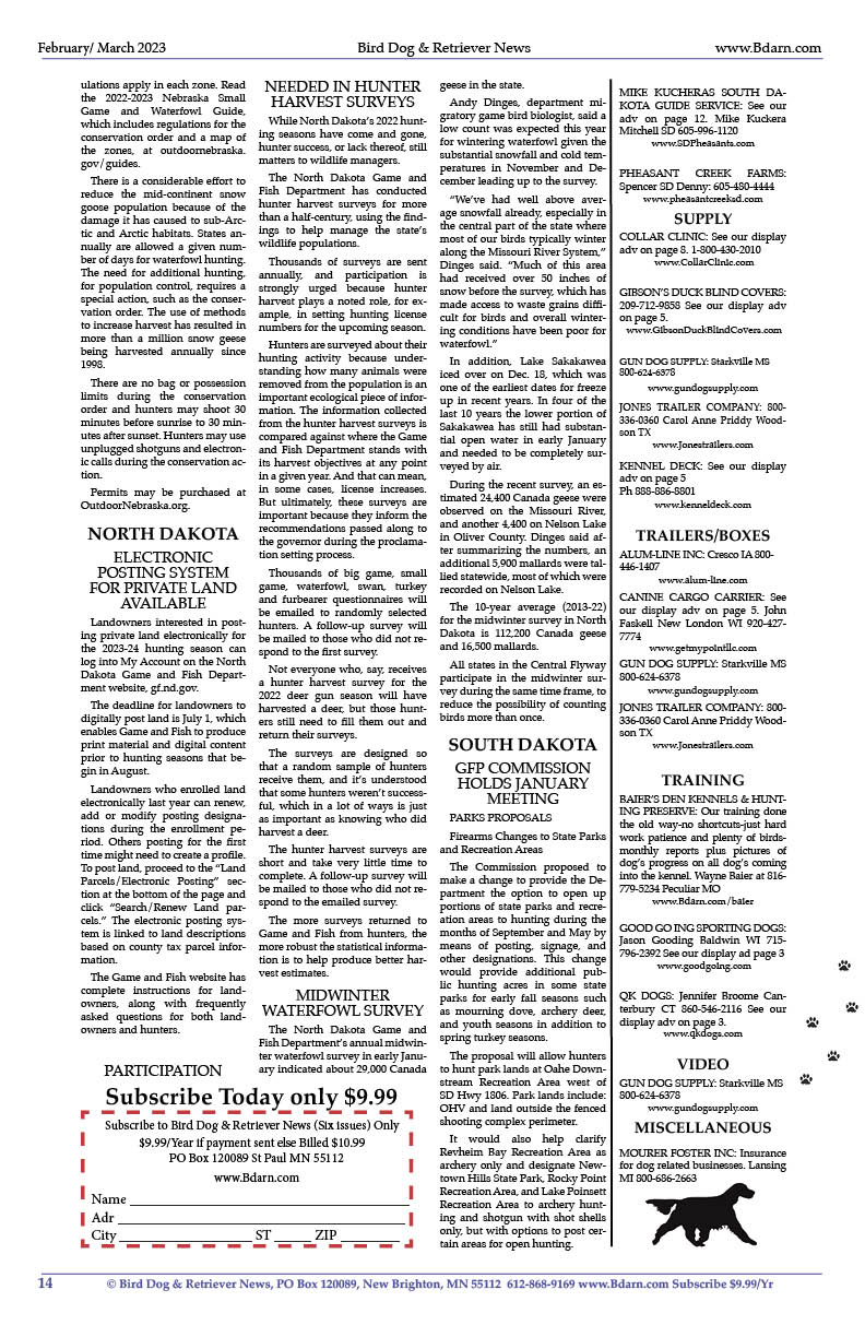 Bird Dog & Retriever News, PO Box 120089, New Brighton,