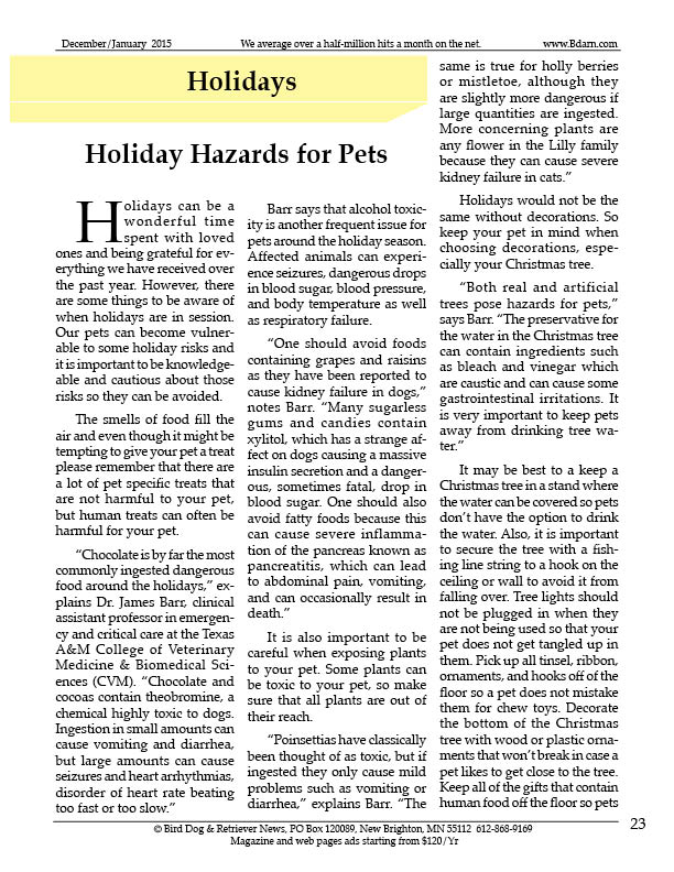 "Chocolate is by far the most commonly ingested dangerous food around the holidays," explains Dr. James Barr, clinical assistant professor in emergency and critical care at the Texas A&M College of Veterinary Medicine & Biomedical Sciences (CVM). "Chocolate and cocoas contain theobromine, a chemical highly toxic to dogs. Ingestion in small amounts can cause vomiting and diarrhea, but large amounts can cause seizures and heart arrhythmias, disorder of heart rate beating too fast or too slow."