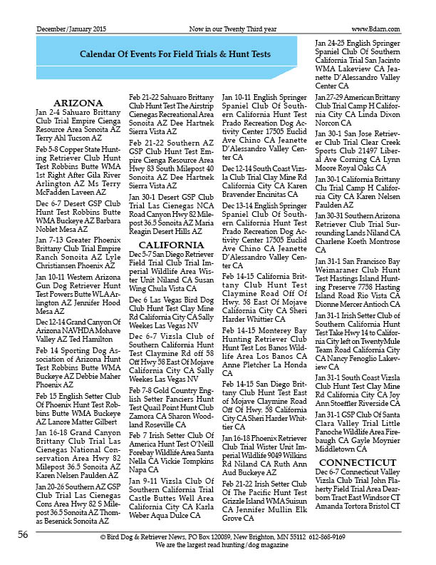 Jan 16-18 Grand Canyon Brittany Club Trial Las Cienegas National Conservation Area Hwy 82 Milepost 36.5 Sonoita AZ Karen Nelsen Paulden AZ