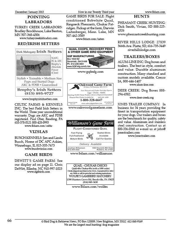 Bird Dog & Retriever News, PO Box 120089, New Brighton,